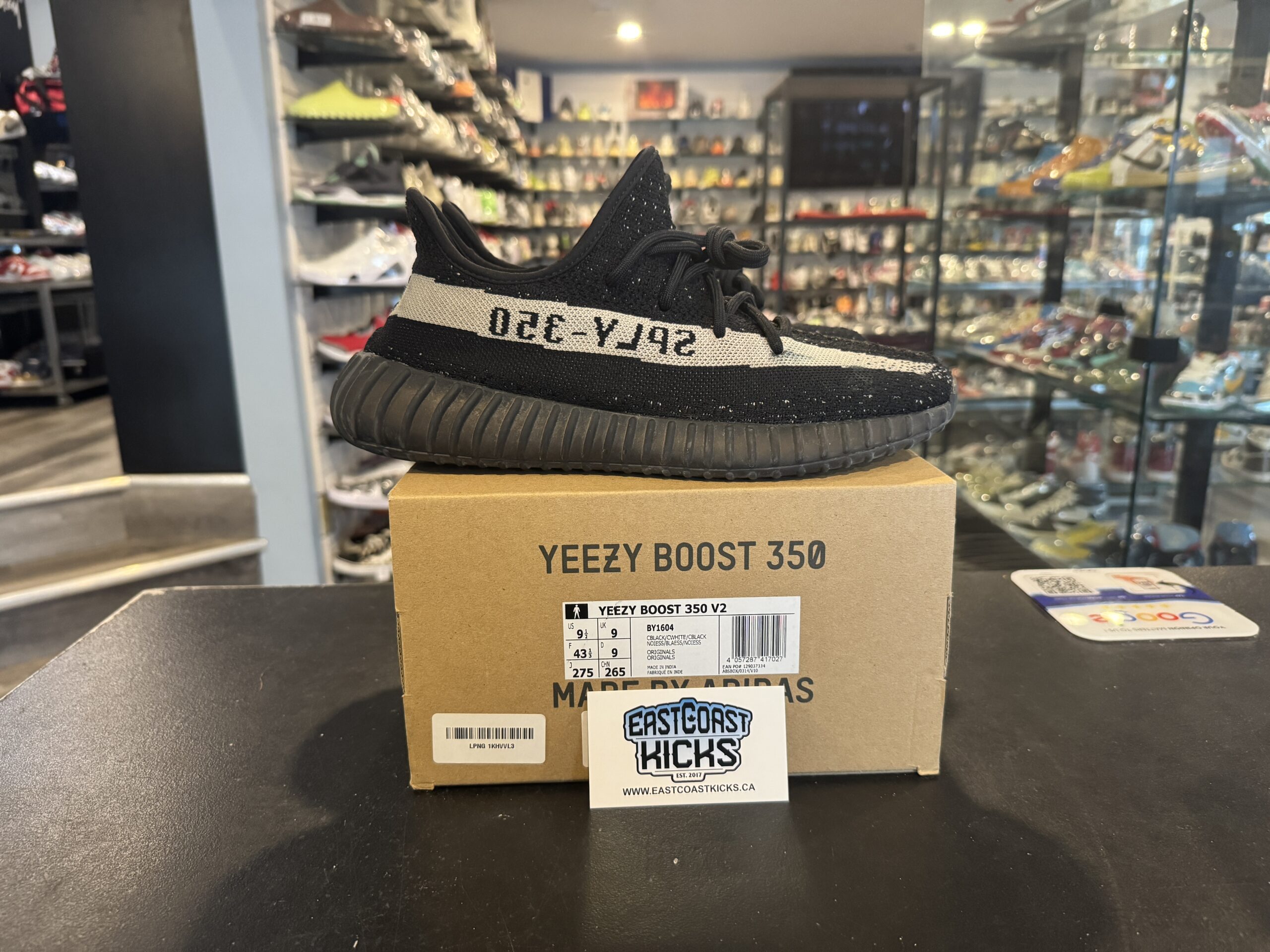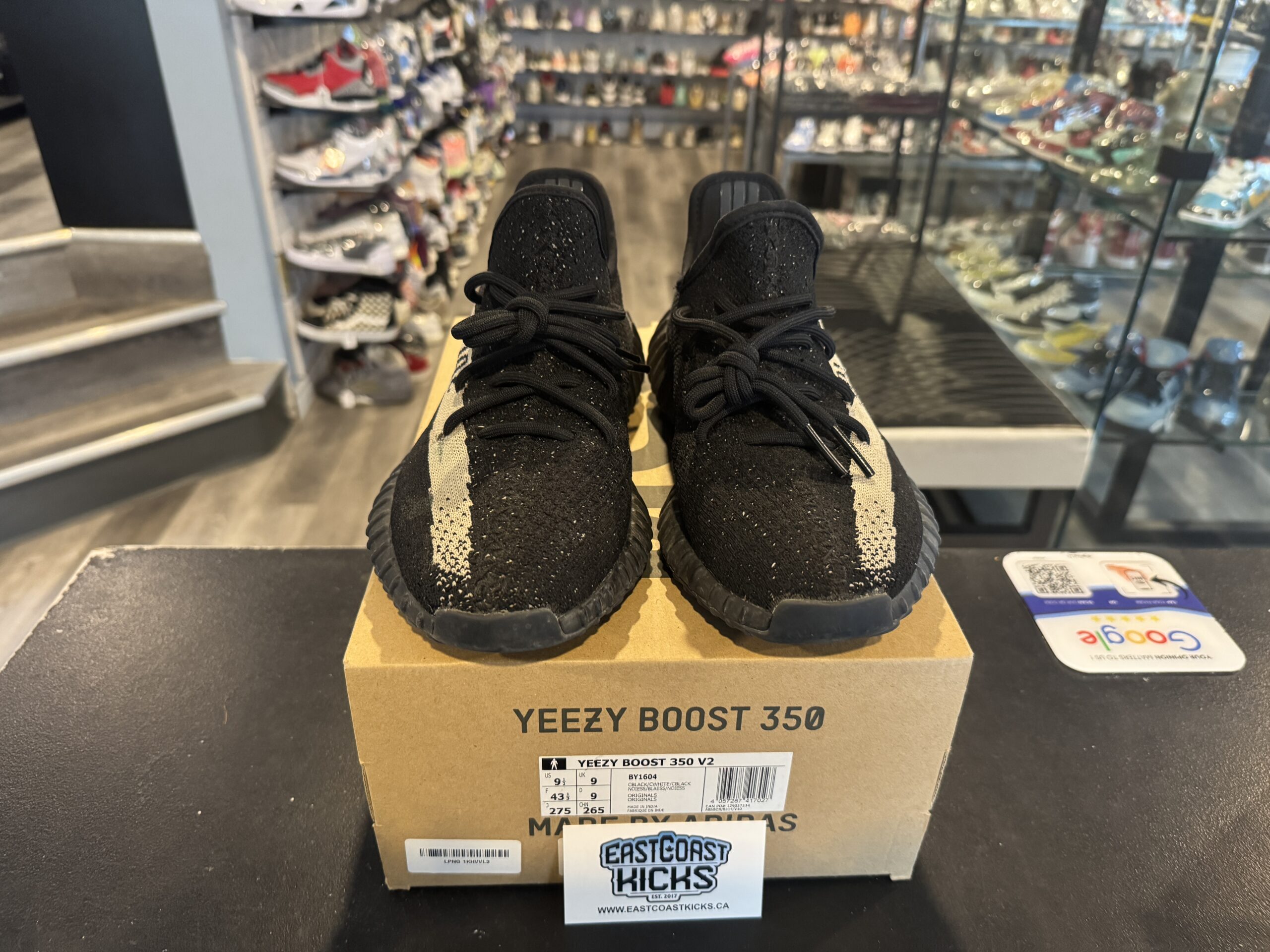 Preowned Adidas Yeezy Boost 350 V2 Core Black White Size 9.5